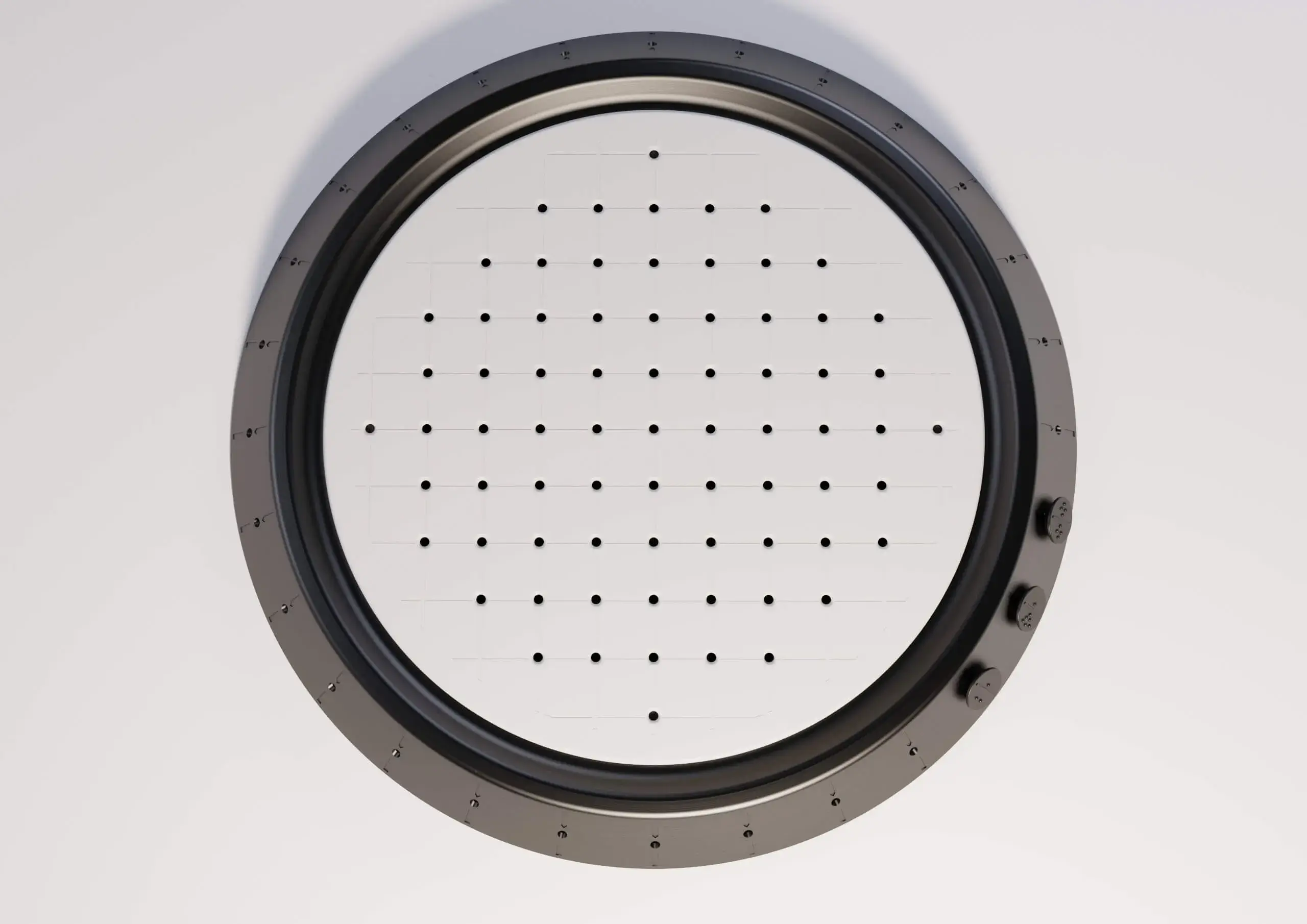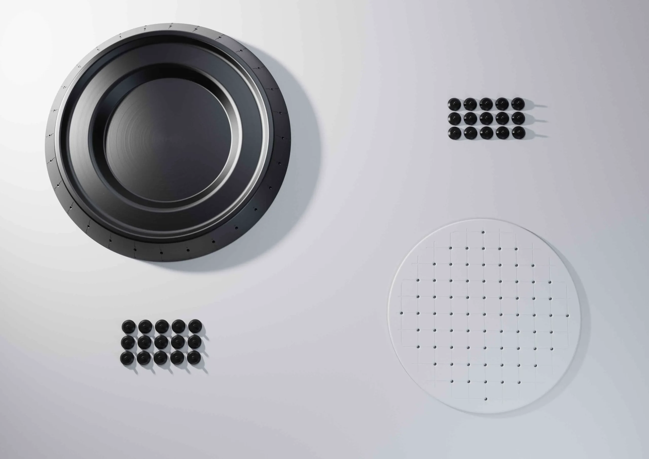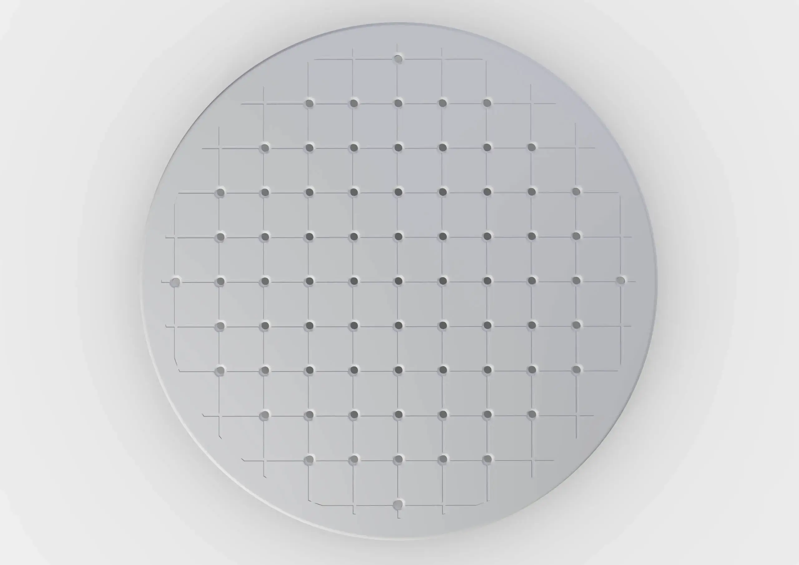 The board's base features cutouts facing the participants, ensuring that the domino pieces are concealed from the opponent's view, regardless of their vision. Each circular cutout includes a recessed vertical line, serving as a guide for accurate placement.