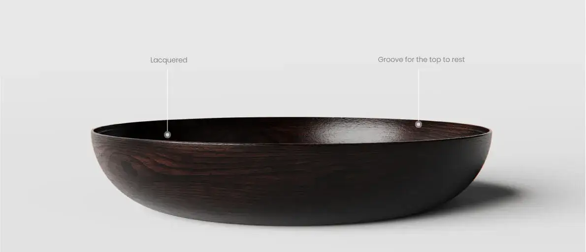 La base está elaborada con madera torneada, brindando una sólida estructura gracias a su distribución de peso. Su acabado natural complementa diversos estilos de interiores, mientras que un recubrimiento protector garantiza resistencia al agua. Incorpora una ranura para sostener el componente superior.