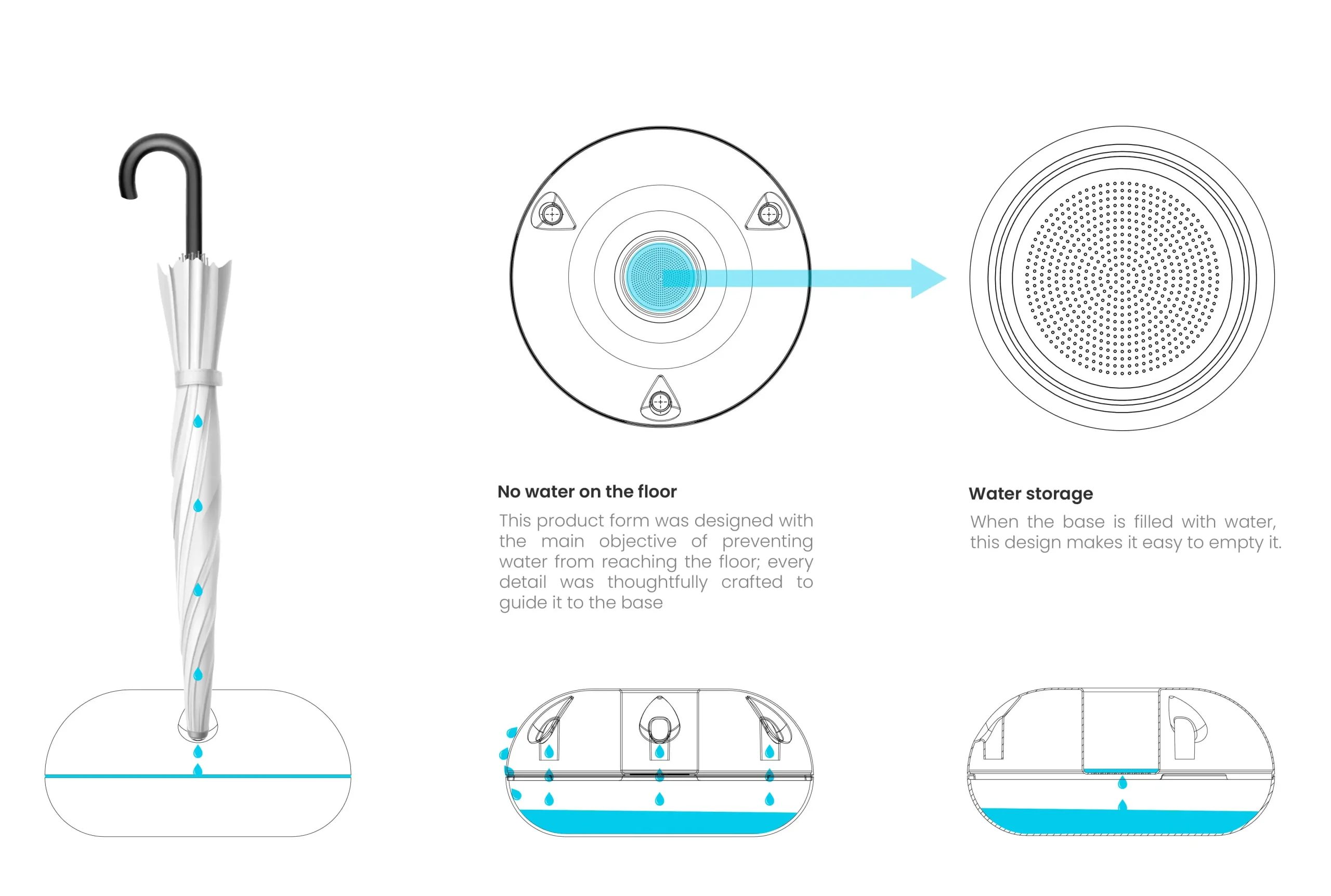 El portaparaguas es un componente funcional diseñado para albergar múltiples paraguas. Equipado con recortes de drenaje, recoge el agua de los paraguas, evitando que se propague al área circundante.